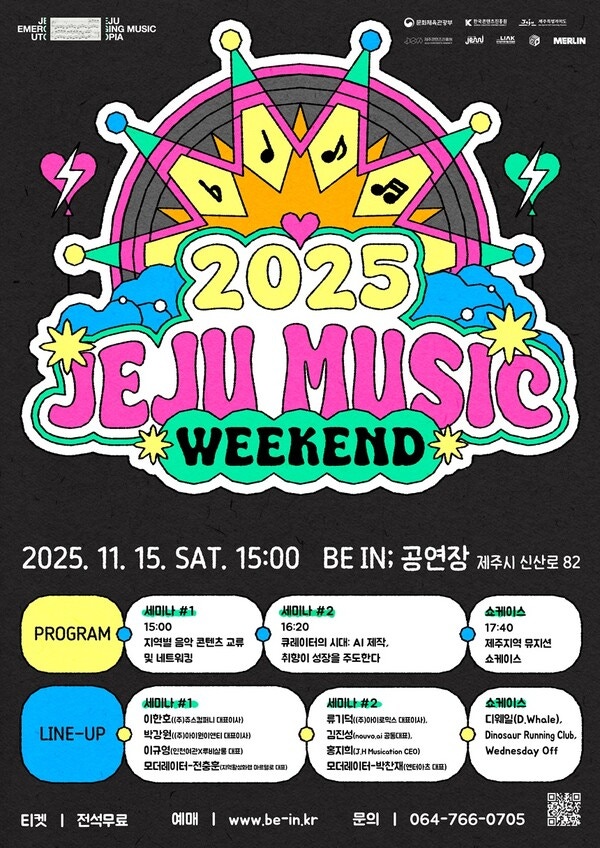 [스포티비뉴스=김원겸 기자]제주특별자치도와 제주콘텐츠진흥원, 한국음악레이블산업협회가 함께하는 '2025 제주 뮤직 위켄드'가 오는 11월 15일 제주시 일도이동 비인(Be IN;) 공연장에서 열린다.
