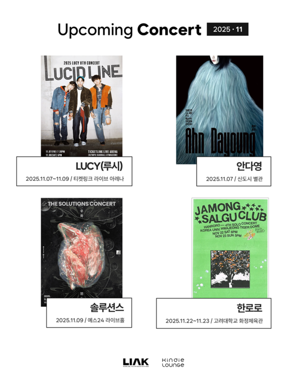 한국음악레이블산업협회(음레협)가 운영하는 음악 큐레이션 플랫폼 '킨디라운지'가 11월의 주요 공연 네 편을 소개한다.