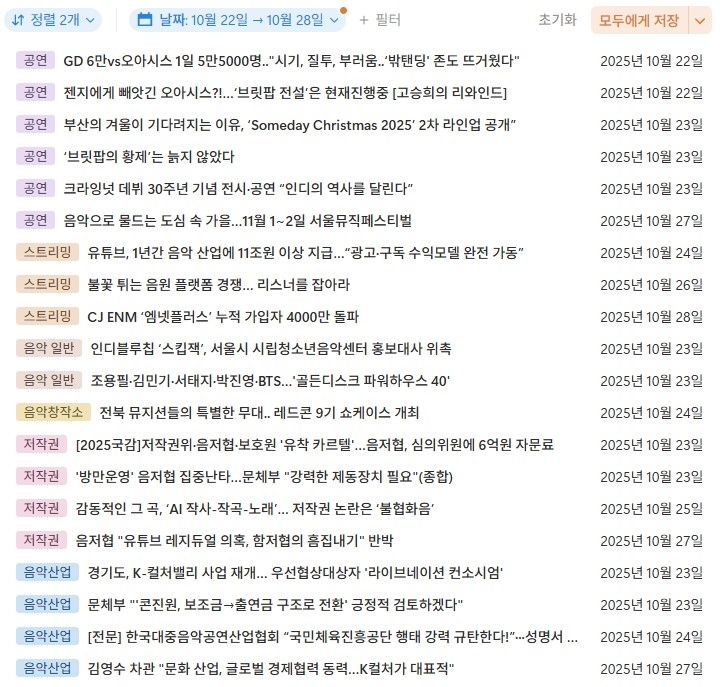2025년 10월 5주(44주차) 음악산업동향 및 공모 공고 리스트를 열람하실 수 있습니다.
