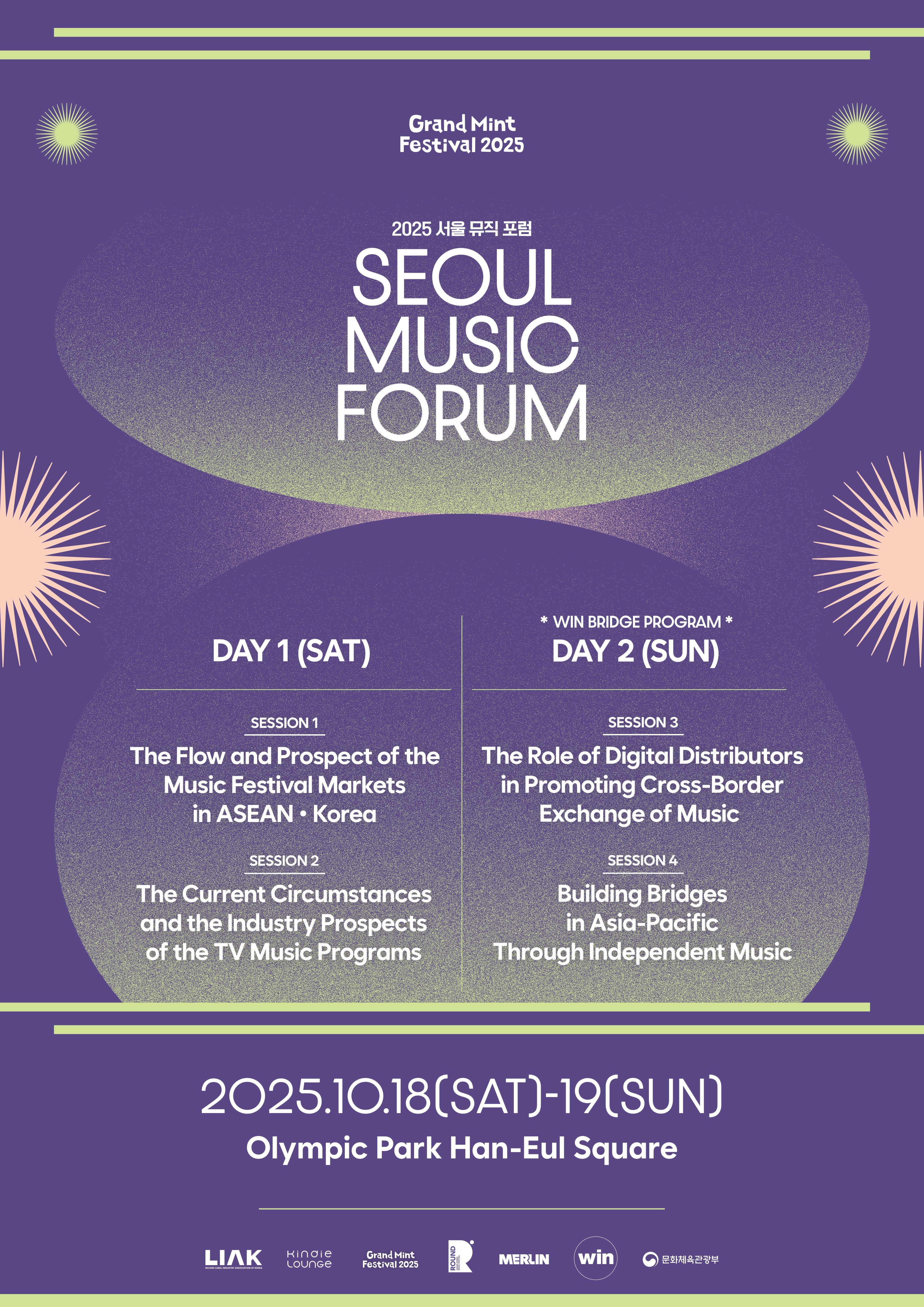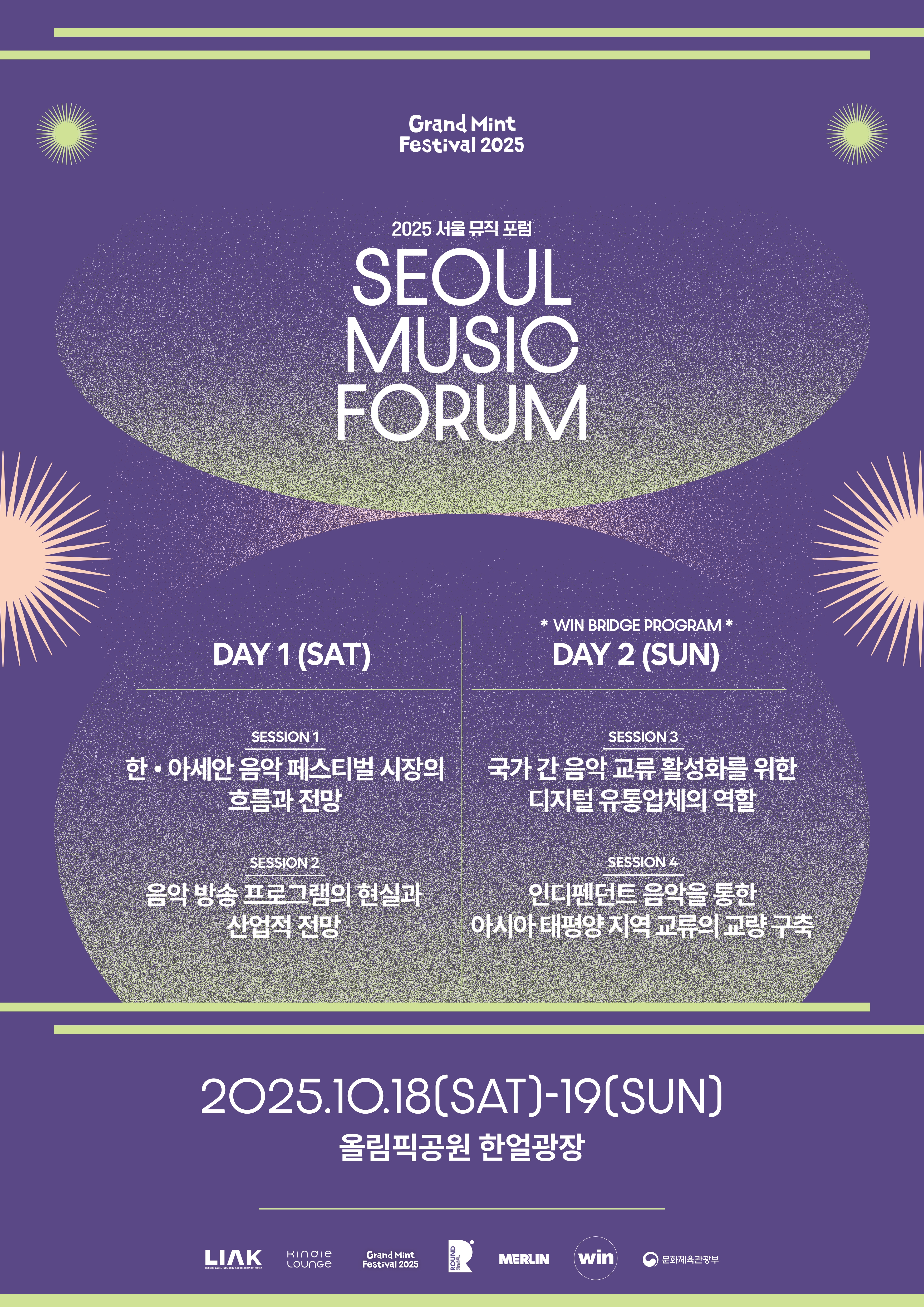 * 10월 18일(토)~19일(일) 2025 서울 뮤직 포럼 (올림픽공원 한얼광장, 서울 송파)
