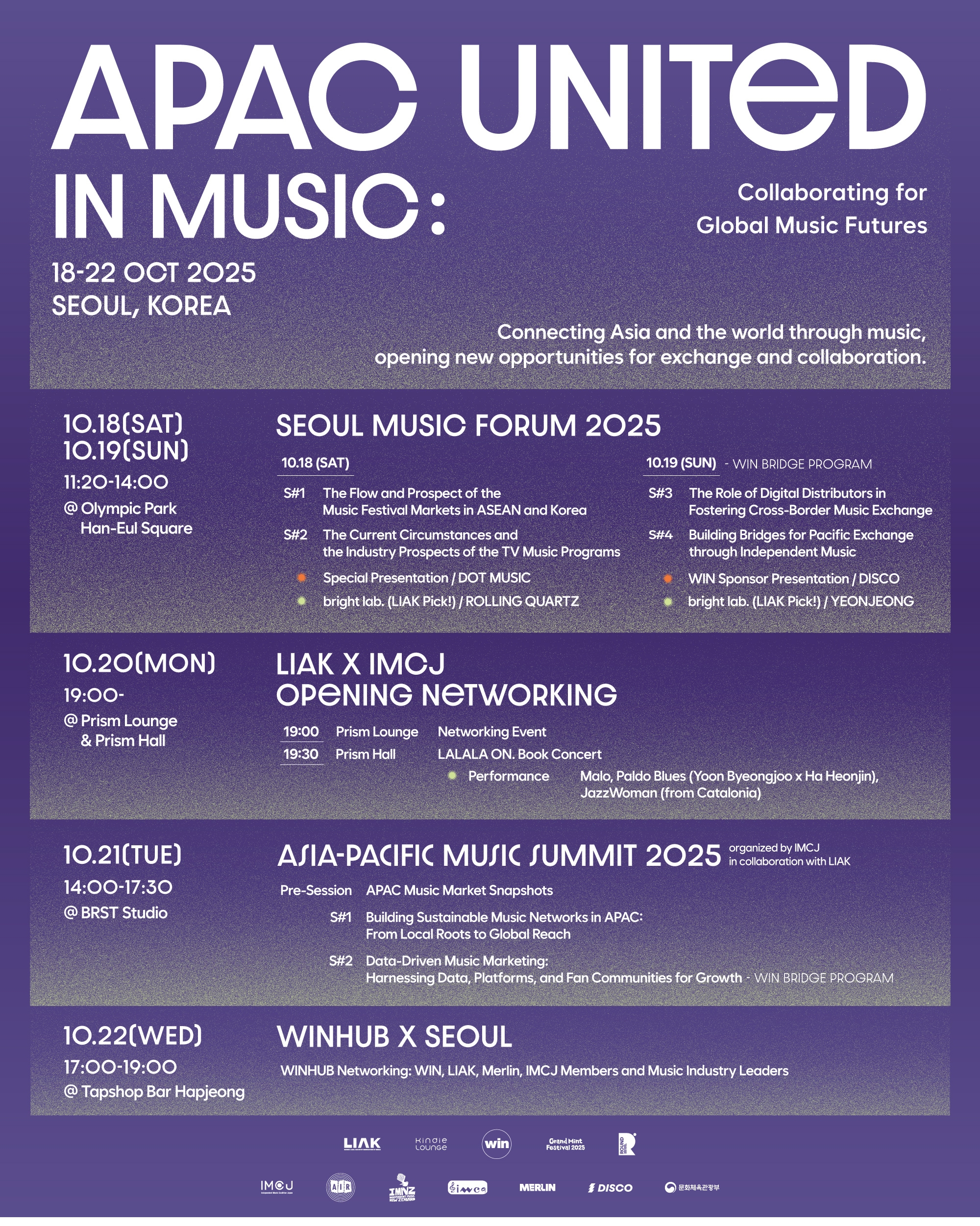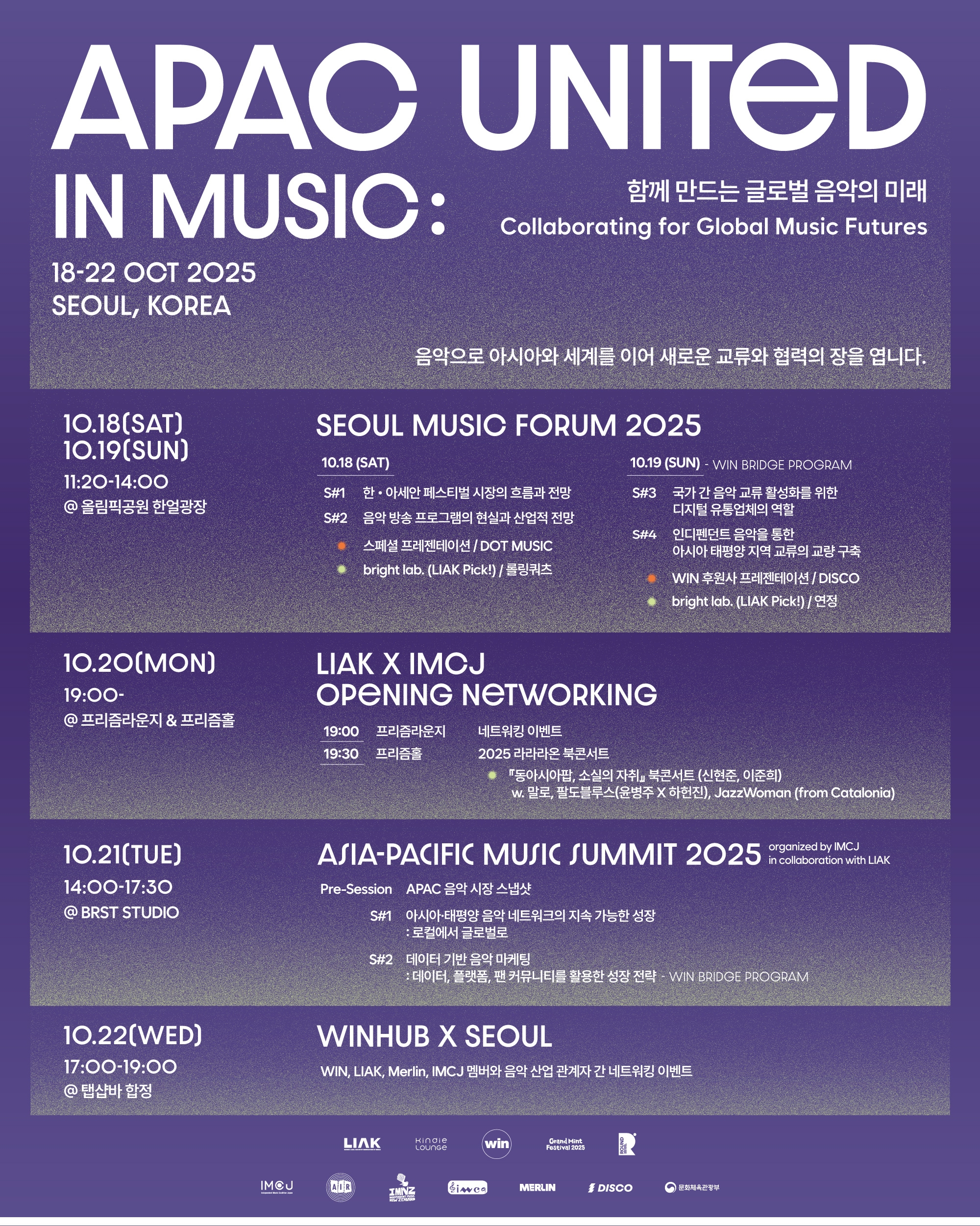 - Led by LIAK (Record Label Industry Association of Korea) with WIN, IMCJ, AIR, IMNZ, SIMCA, and Merlin, this is an international platform connecting the APAC music industry